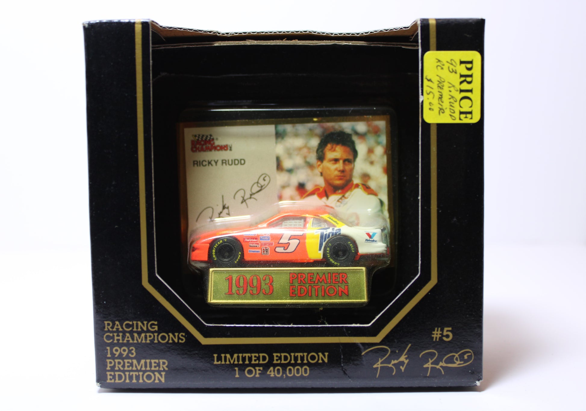 Racing champions premier edition collectible car featuring Ricky Rudd. Comes in original box and with a car and trading card.