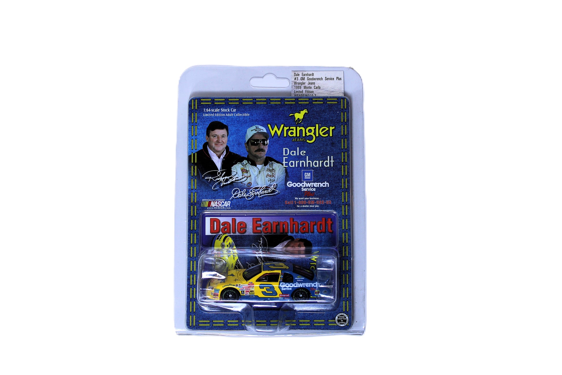 Collectible car featuring Dale Earnhardt and Wrangler. Still in original packaging and comes with car and trading card.