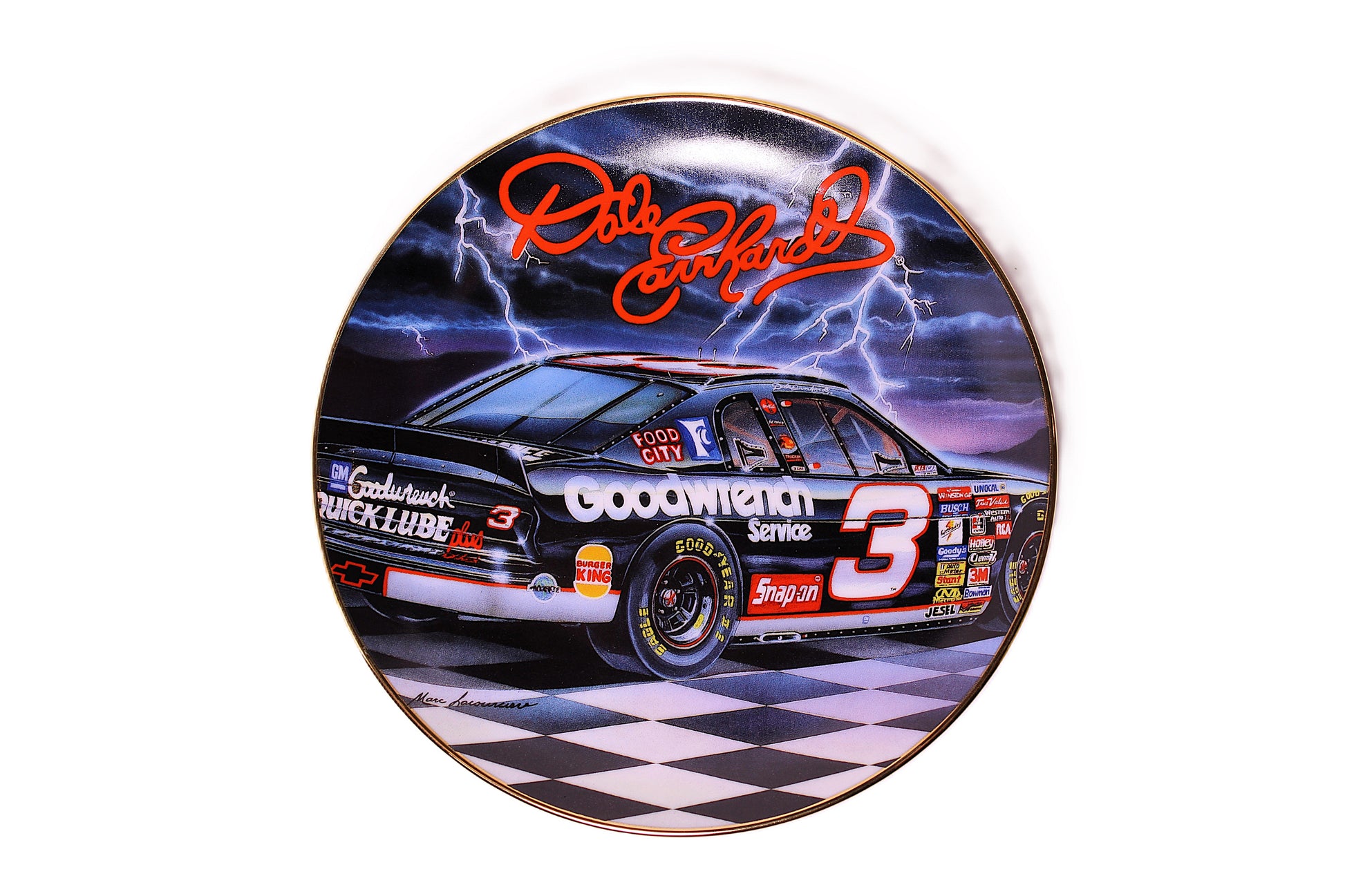 Collectible plate of Dale Earnhardt and his goodwrench #3 car produced by Hamilton Collection.