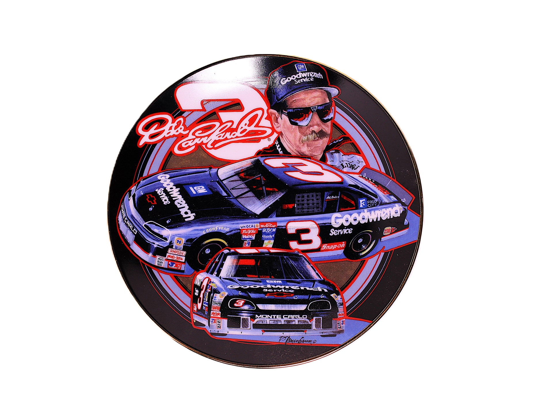 Collectible plate of Dale Earnhardt and his goodwrench #3 car produced by Hamilton Collection.