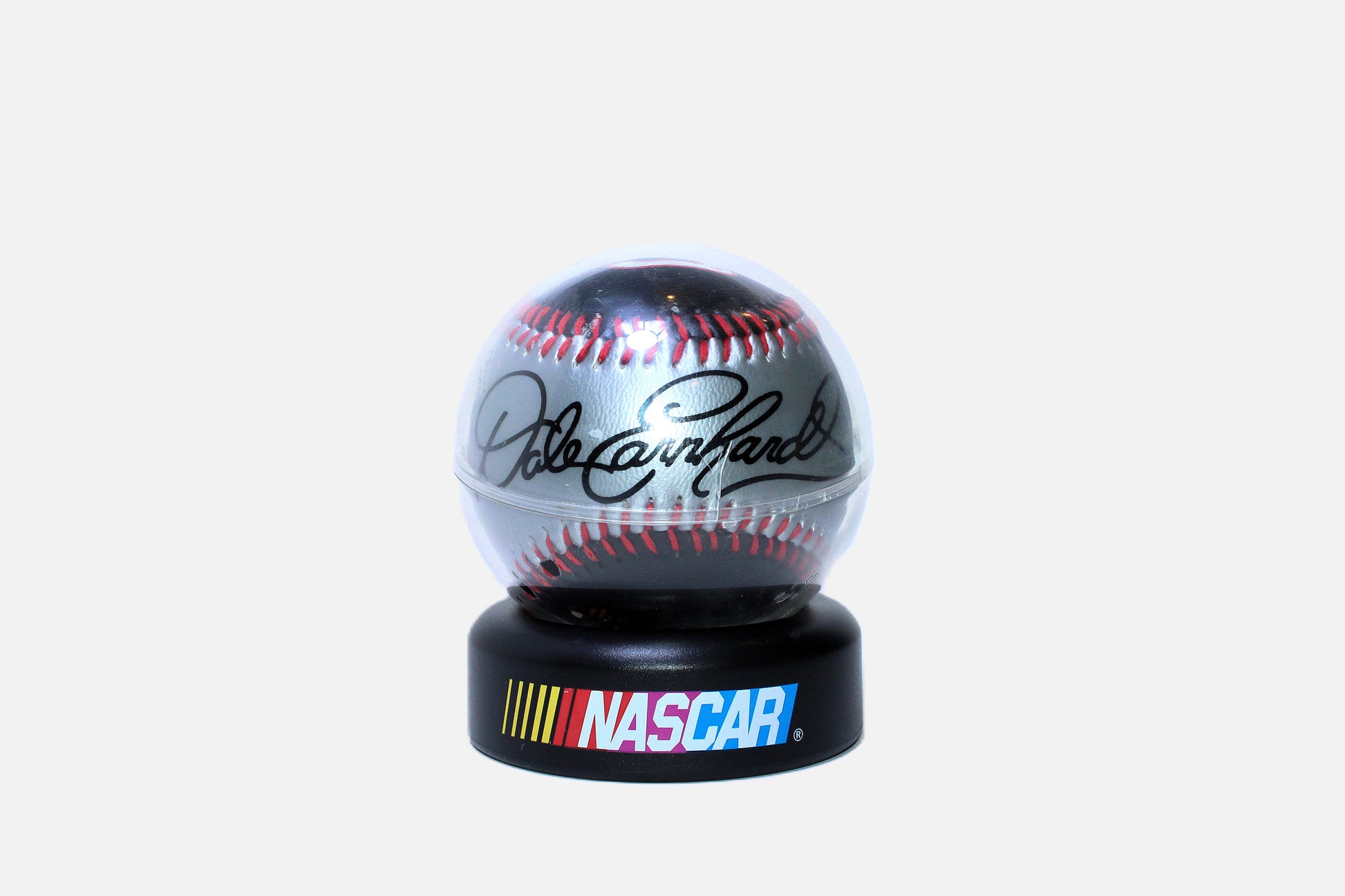 Signed baseball by Dale Earnhardt Sr. Comes with baseball and stand.